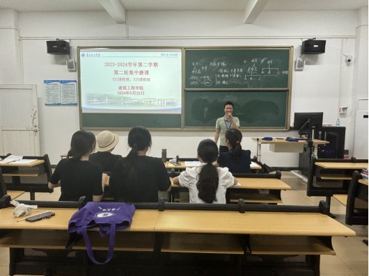 (谭堂州)为进一步深化课题教学改革,优化教学内容,创新教学方法,打造“金课”,淘汰“水课”,全面提升教师课堂教学水平和教学质量,同时也为了对第一轮磨课的成效进行复核和对比,土木工程系TTZ课程组和YZY课程组于2024年5月23日在教6-110联合进行了第二轮磨课活动。