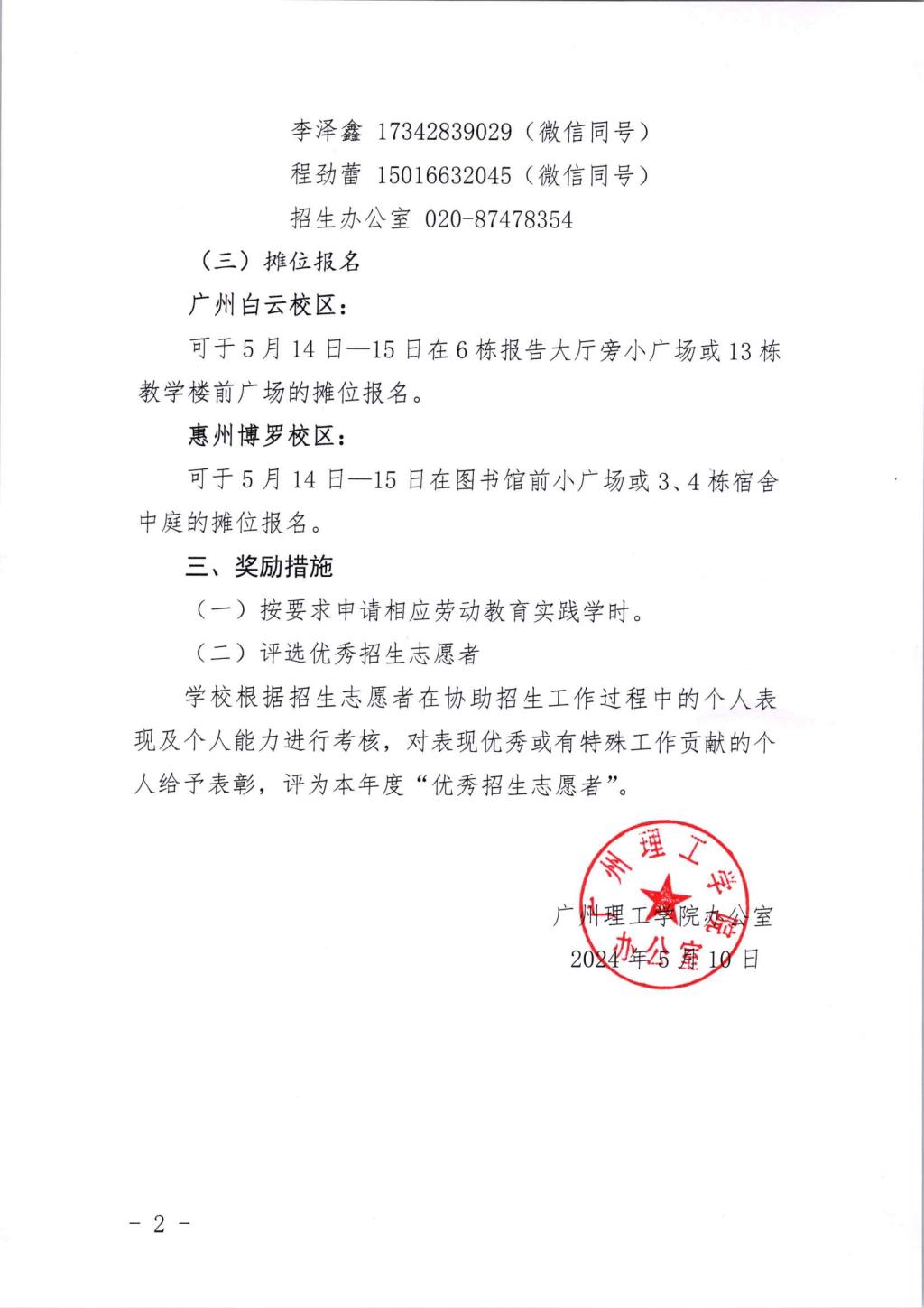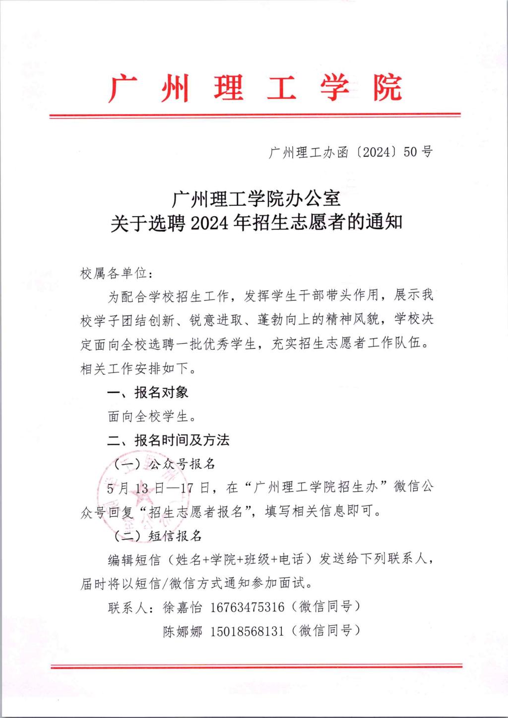 广州理工学院办公室关于选聘 2024年招生志愿者的通知
