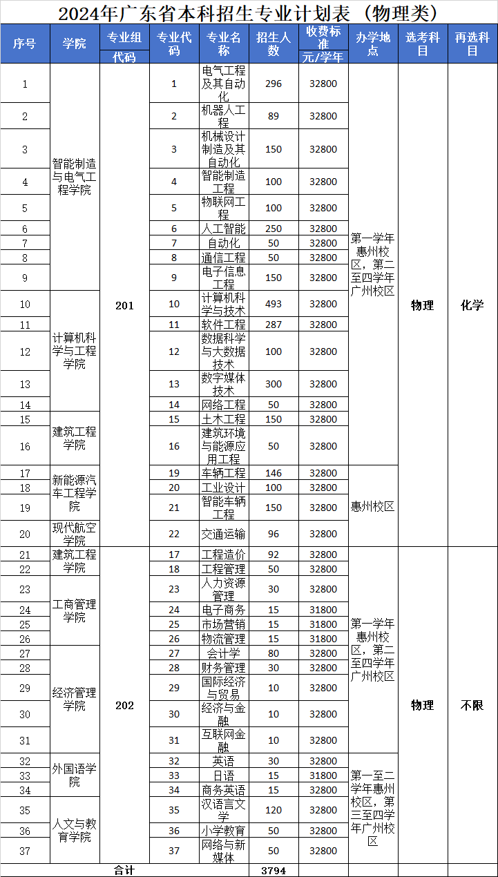 广州理工学院2024年普通高考招生计划