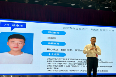 在就业赛道中,来自21工管3班(Z)的姚章泽同学以98分的高分获得第一名,他从个人简介、自我评估、目标岗位及职责、行业背景及发展趋势、实践经历以及未来规划等多方面进行阐述,充分展现出自身条件与目标岗位的适配度,向所有评委老师和观众展现出了其清晰的职业规划,得到评委老师的好评,斩获一等奖。