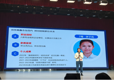 在成长赛道中,来自21土木2班的许丁元同学,以“扬帆起航,破浪前行”为主题,以优秀学姐为成长榜样,以一名土木学子的身份,给出明晰的职业规划、学业规划、个人素质方案,取得成长赛道优秀奖。