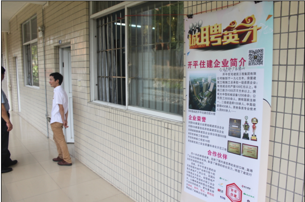 为了更好地拓宽2016届毕业生就业渠道,4月23日至27日,我院分别邀请了开平住建集团、广东建安消防机电工程有限公司、广州全成多维信息技术有限公司到校举办专场招聘宣讲会(以下简称招宣会)。大约有近100人次的16届毕业生参加了这3场招宣会。我院领导对本次招聘会给予了高度的重视,学院党总支书记李华东、学院副院长黄良辉以及学院办公室主任杨惠亲自前往现场,细心地询问用人单位的详细情况和同学们投递简历的情况,招宣会上各企业代表对我院学生给予了极大的肯定。一位企业面试官说,他们最看重应聘者的实践动手能力及业务素质,在面试中感觉我院学子综合素质较高,对自己的人生有详细规划。