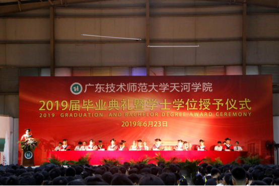6月23日8点,学校在体育馆内为2019届毕业生举行毕业典礼暨学士学位授予仪式。学校领导及各二级学院领导参加了本次毕业典礼。毕业典礼由副校长张武华主持,在庄严的国歌声中拉开了典礼的帷幕。校领导宣布了《天河学院关于2019届毕业生学位授予决定》、《天河学院2019届表彰优秀毕业生决定》,并向获省级表彰荣誉和今年考取研究生的学生颁奖。